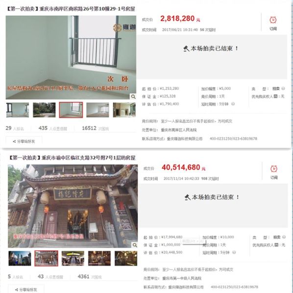 1、重庆市渝中区临江支路32号附7号1层的房屋:5人报名,起拍价:1799.468万元,成交价 4051.4680万元,溢价率为125.15%